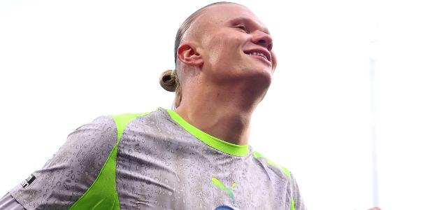Não demorou para o City abrir o placar. No lance seguinte a bola na trave, foi a vez de Haaland se destacar. O norueguês recebeu de Doku em lançamento ainda no meio de campo e disparou em velocidade.